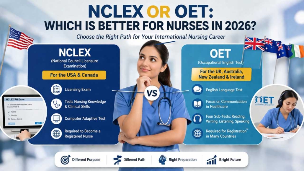 Many nurses who plan to work abroad often feel confused and search “nclex or oet which is better” or “nclex or oet which is better for nurses in 2026.” This confusion is very common, especially for beginners.